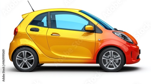 Colorful, compact car. Side view