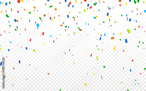 Colorful confetti with party streamers on white background. Multi-colored tinsel, confetti fall from the sky on a transparent background. holiday, birthday.