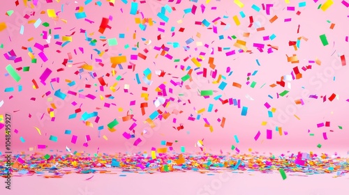 Colorful confetti cascading through the air, vibrant hues creating a festive atmosphere, scattered freely against a soft background, evoking celebration and joy.