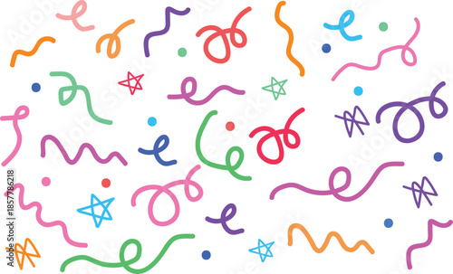 Colorful Confetti Doodle Squiggles and Star Sprinkles Background