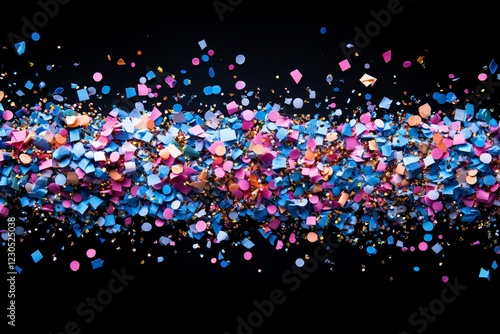 Colorful confetti explosion on a black background creating a festive atmosphere during a celebration or party event