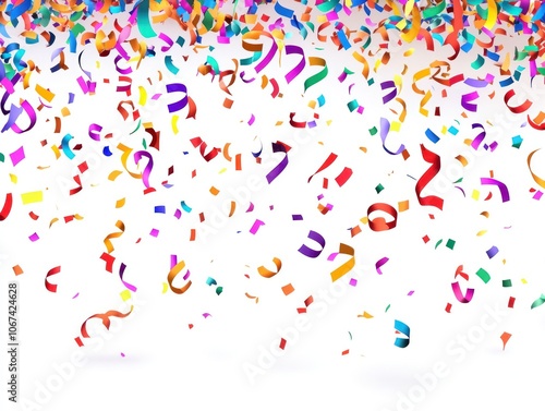Colorful confetti falling against a white background, symbolizing celebration and joy.