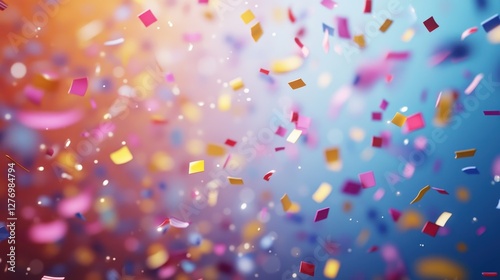 Colorful confetti falling in celebration with soft focus background and vibrant lights