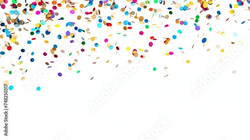 Colorful confetti falling on white background. Use it as a party invitation, greeting card, or website background.