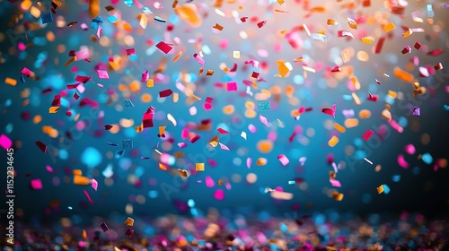 Colorful confetti falls against dreamy backdrop, creating festiv
