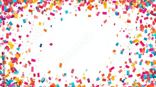 Colorful confetti frames a blank space, perfect for celebrations, invitations, or festive designs. Vibrant and cheerful atmosphere.