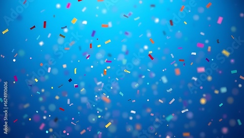 Colorful confetti frozen in motion against a blue gradient, capturing a festive and dynamic moment.
