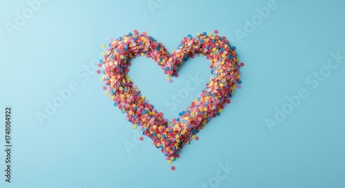 Colorful confetti heart on a light blue background. Romantic, joyful composition