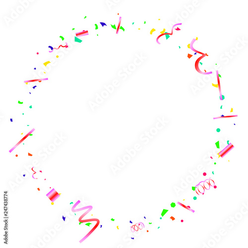 Colorful confetti on white background.