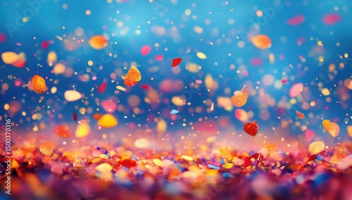 Colorful confetti, petals, falling from sky. Vibrant, abstract background