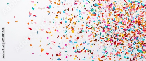 Colorful confetti scattered against a white background, perfect for celebration or party themes, showcasing festive emotions and a vibrant atmosphere