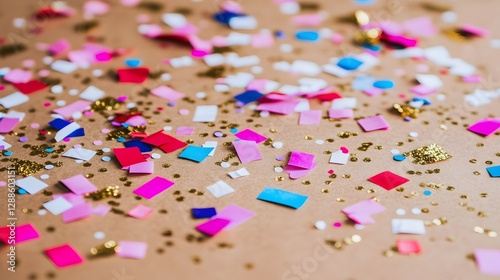 Colorful Confetti Sprinkled on Brown Surface Creating a Vibrant Festive Atmosphere