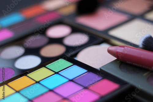 Colorful Cosmetic Pigment Palettes and Various Cosmetics