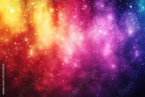 Colorful cosmic dust and galactic particles create a captivating backdrop with vibrant hues of yellow, orange, red, purple, and blue in a spectacular starry night display over Earth