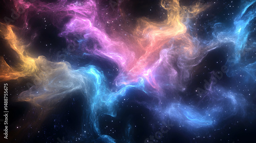 Colorful Cosmic Nebula in Deep Space with Stars and Gas Clouds