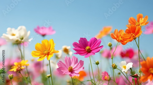 Colorful Cosmos Flowers Field