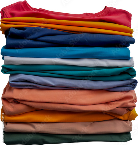 Colorful cotton t-shirts stacked cut out on transparent background