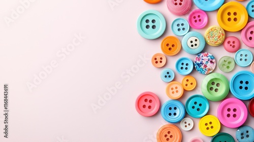 Colorful Craft Buttons in Various Sizes Arranged on Soft Background for Creative Projects