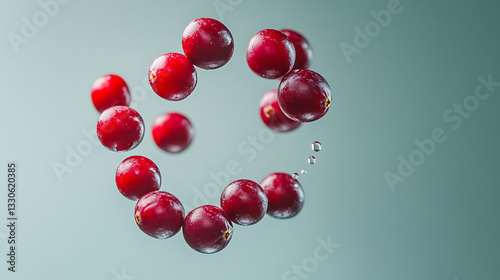 Colorful cranberries floating in mid-air, light background