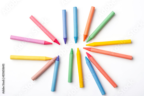 Colorful Crayons Arranged in a Circle on a White Background