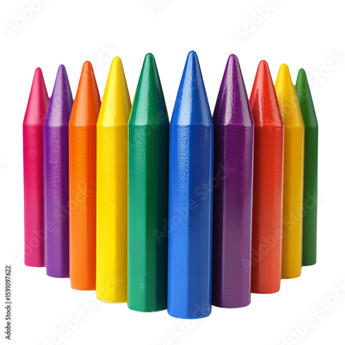 Colorful crayons arranged in a circular pattern for back to school concept isolate on transparent background