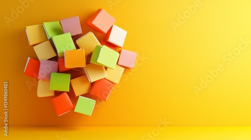 Colorful Cubes Stacked on Bright Yellow Background for Creative Design