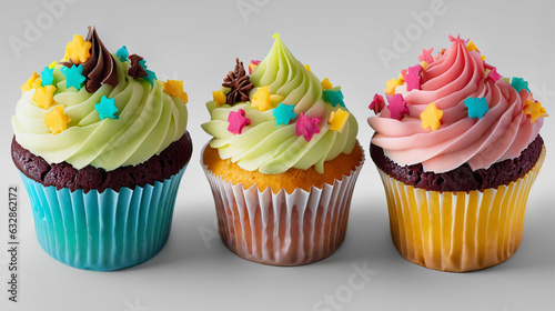 Colorful cupcake isolated on white. Delicious cupcake with frosting