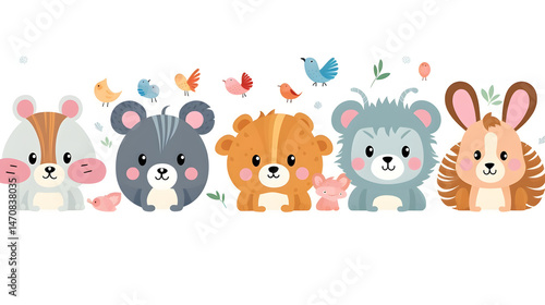 Colorful Cute Animals Cartoon Vector Pattern Background Illustration for Design Projects