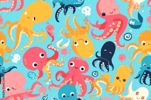 Colorful cute octopus seamless pattern