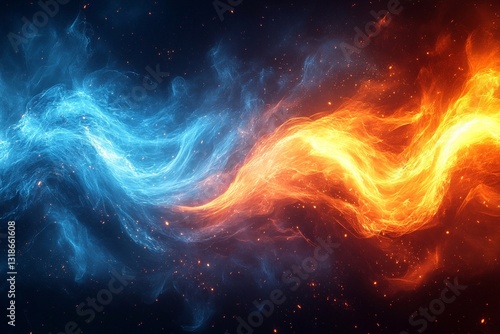 Colorful dance of fire and ice swirling together in a cosmic embrace