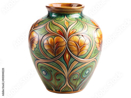 Colorful decorative ceramic vase with intricate patterns and vibrant colors, isolated on transparent background, png.