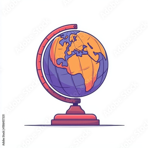 Colorful Desk Globe Illustration World Map Geography Education Travel