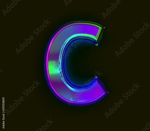 Colorful dichroic film font - letter C isolated on grey, 3D illustration of symbols