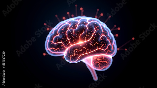 Colorful digital brain illustration, vibrant neural connections glowing, representing creativity and innovation, ideal for educational use.