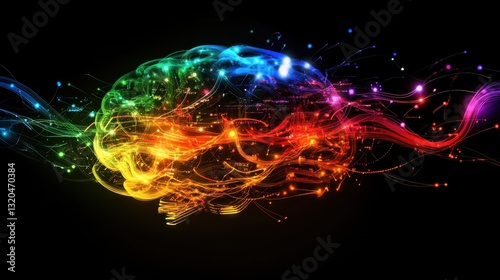 Colorful digital brain made of interconnected glowing circuits, symbolizing intelligence, creativity, and innovation