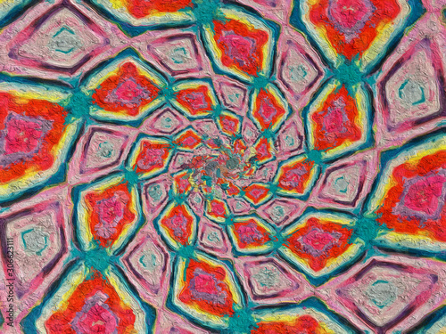 Colorful digital graphic kaleidoscope symmetry mandala style in laser light trial pattern, Tie Dye , spiderweb art abstract background for art projects, banner, business, card, 3D, template