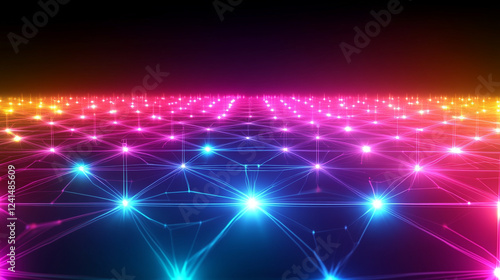 Colorful digital landscape showcasing vibrant glowing connections in a futuristic setting during nighttime