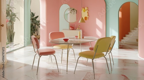Colorful dining room with modern furniture