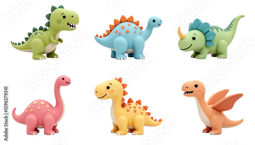 Colorful dinosaur toys, white isolate background