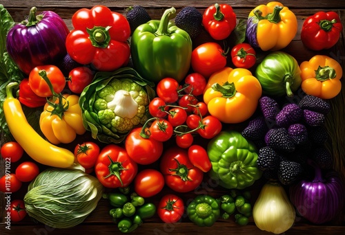 colorful display fresh organic fruits vegetables artfully arranged natural wooden background, artisan, vibrant, seasonal, local, rustic, sustainable, basket