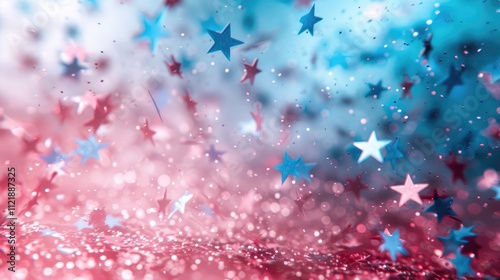 Colorful display of red and blue stars on a bright white backdrop for festive occasions