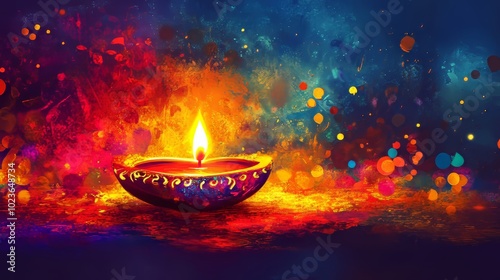 Colorful Diwali background featuring vibrant splashes and abstract designs.