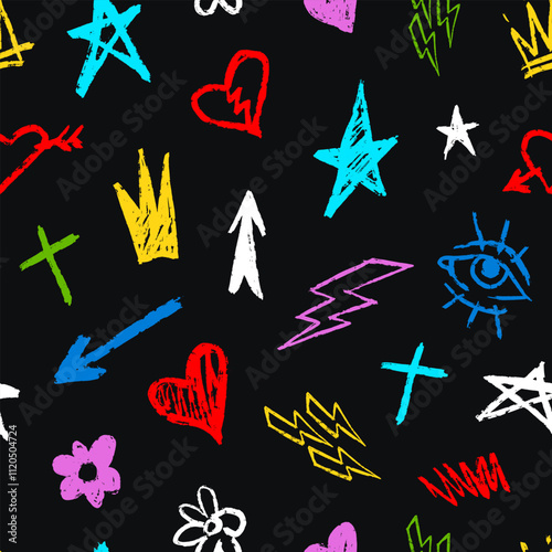 Colorful doodle patterns with hearts and stars