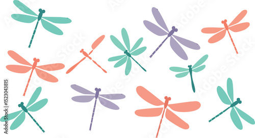 Colorful dragonflies flying in natural environment vector illustration soft pastel tones