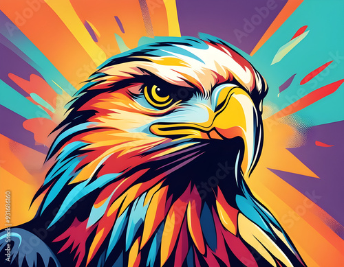 colorful eagle head with cool isolated pop art style background