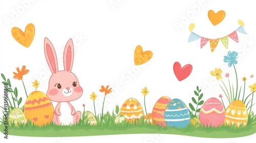 Colorful Easter Bunny with Pastel Eggs and Flowers