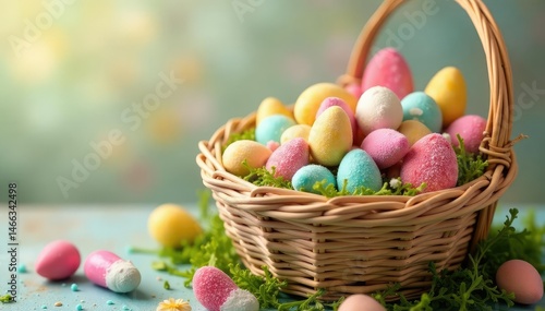 Colorful Easter candy assortment in a basket, springtime sweets , vibrant, cheerful