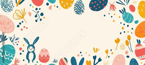 Colorful Easter Card Template Featuring Playful Eggs and Bunnies in Cartoon Style