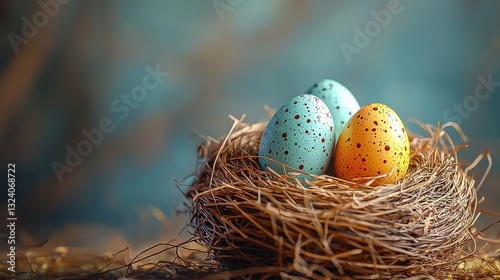 Colorful Easter Celebration: Beautiful April Decoration Concept Featuring Crafted Eggs on Paper Background with Copy Space.
