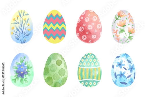 Colorful easter egg vector set, a spring holiday illustration with floral pattern